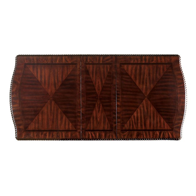 Bellagio Brown Cherry Dining Table w/ 2 Leaves, 108"(72" + 2 X 18"Leaf)L X 44"W X 30"H, 293.19lbs. The centerpiece of this set is the beautiful pedestal table, which comes in two styles, adorned with intricate designs on the base and the apron. Two options for the side chairs are offered, as well as a matching mirror and server finished in brown c herry. Features: Elegant And Large Dining Set Two 18 Expandable Leaves Double Pedestals Matching Mirror & Server 2 Chair Options Solid Wood, Wood Veneer, Others Brown Cherry Finish