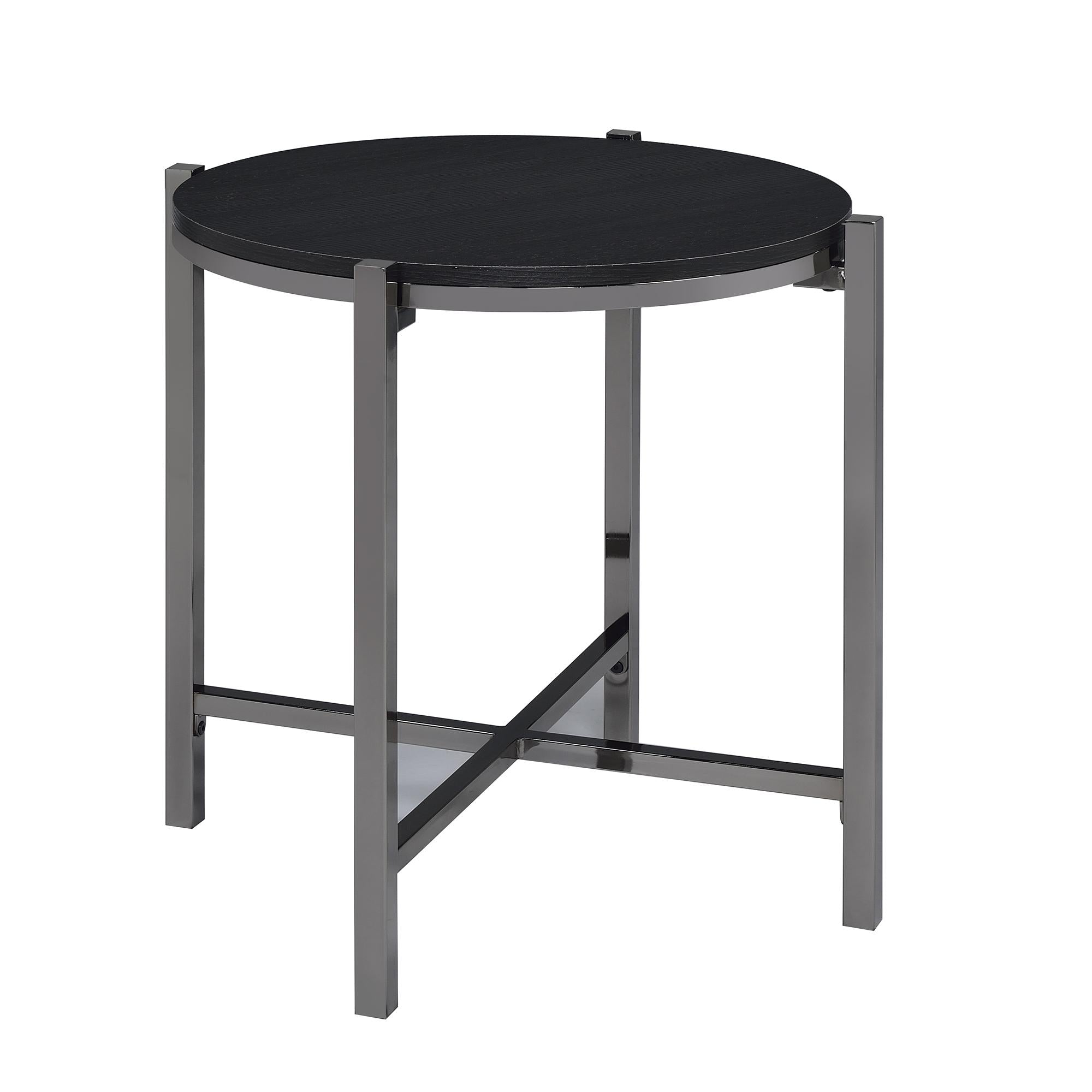 The Cybill 3PC Occasional Table Set is the perfect living room trio for your home! This set includes a coffee table and two end tables, creating the ideal living room. This set is perfect for small space living, thanks to its round design. The table tops are wooden with a black finish, while the legs are metal and powder coated in a chic gold. This set will create the ultimate chic, modern living room youve been craving! The stretchers at the base cross, elevating the design while also providing extra support for sturdiness. Add this trio to your home today! - Includes: Coffee Table & Two End Tables - Round Table Designs - Gold, Metal Legs - Modern Design - Cross Base Legs - Black Table Top Particle Board Metal D x W x H, 64lbs. 1 Year Limited Manufacturer Warranty