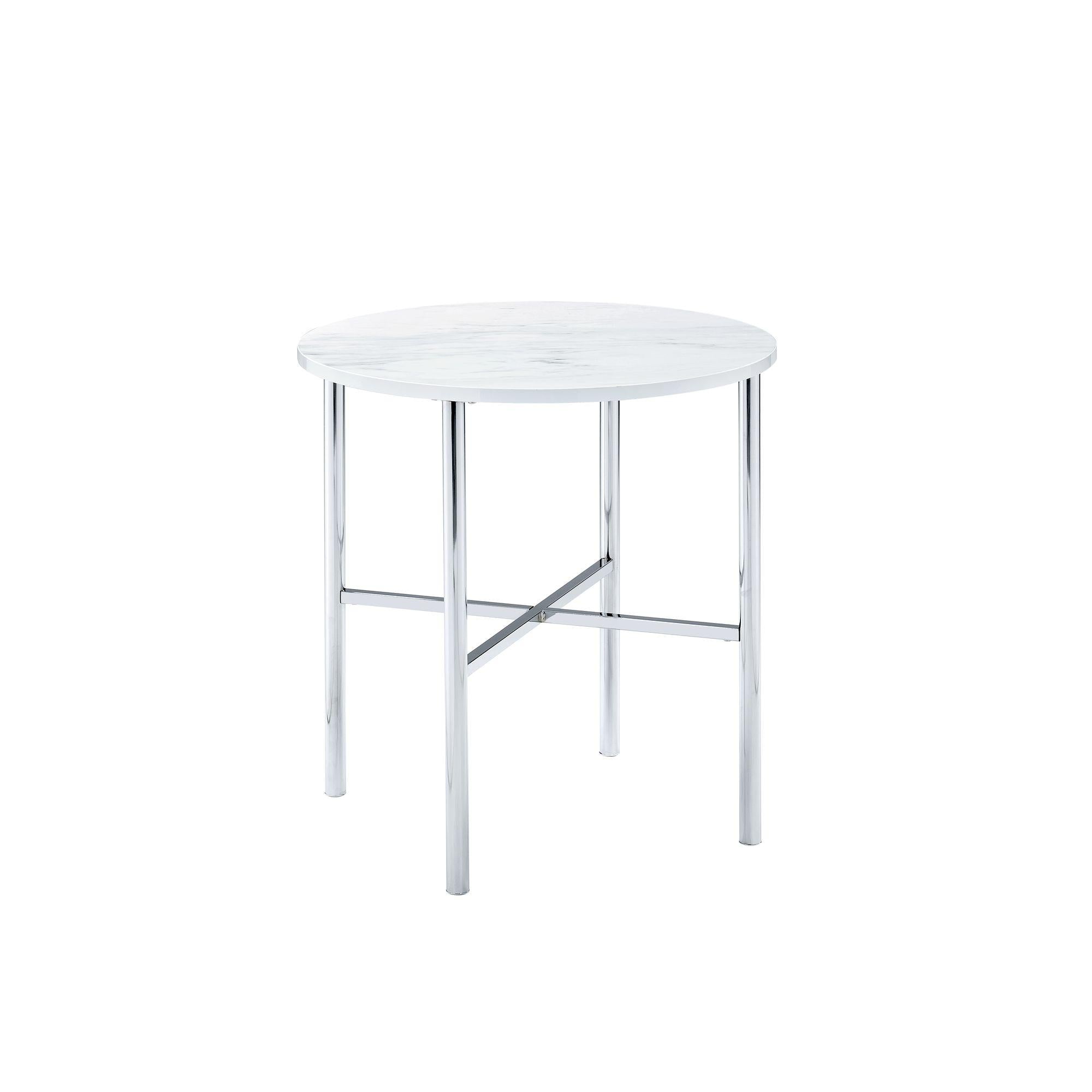 The Cyrus 3PC Occasional Table Set is a must have piece for your living area. Glam begins here, with one coffee table and two end tables in this set. The tables showcase sleek chrome metal legs and a faux marble top. The round shape of the table top and the cross base provide quality stability of this piece. Add a mirrored lamp to the end tables, so the beauty of this set and shine through. Also, the chrome legs will shine against any flooring color and provide that kiss of glam in your space. Turn the lights on and let this glam set shine! - Set Includes: Coffee Table and Two End Tables - Contemporary Design - Chrome Metal Legs - White, Faux Marble Table Top - Cool, Cross Table Base - Round Shape Wood Table Top Metal Marble Paper D x W x H, 51lbs. 1 Year Limited Manufacturer Warranty