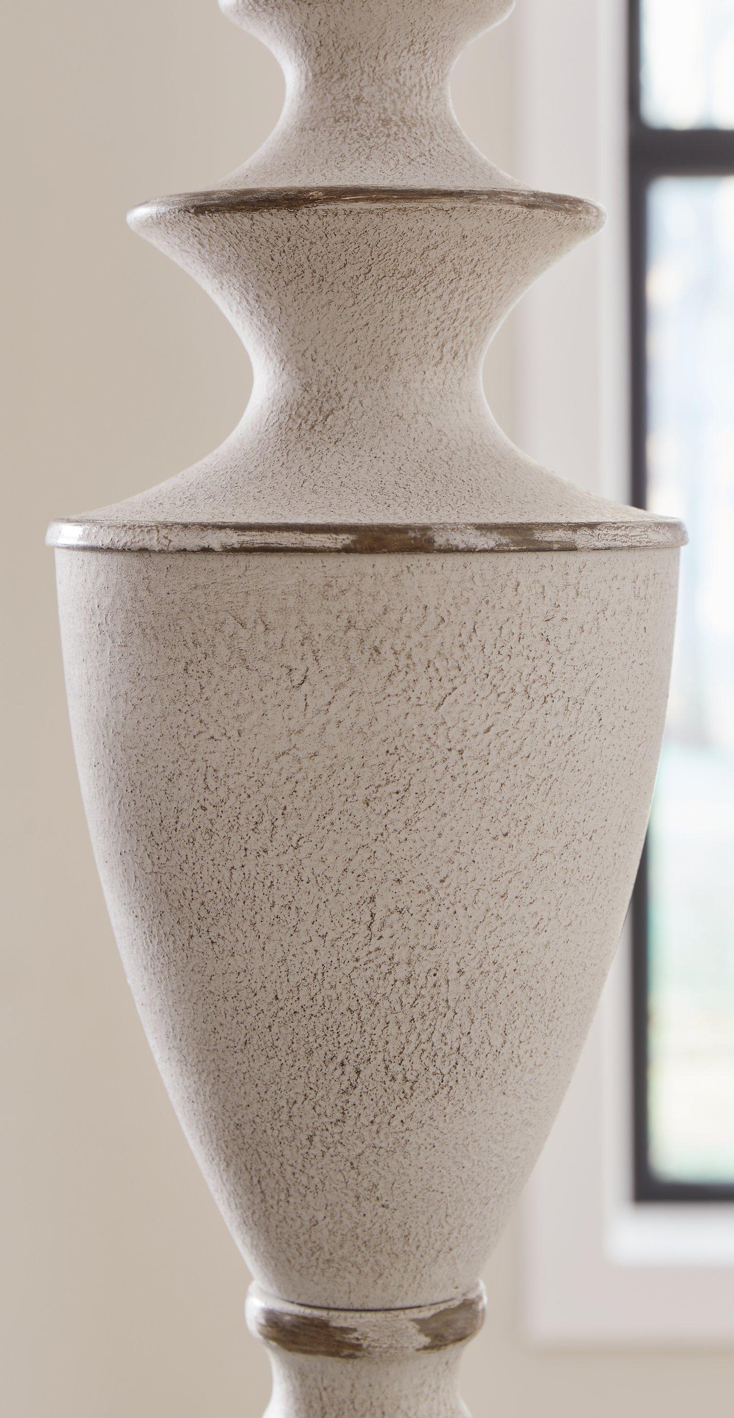 This stylish table lamp set offers a clean, classic look and feel with appealing illumination. Each lamp's metal base features an antiqued gray finish that complements any space. Fabric shades are a lovely final touch.