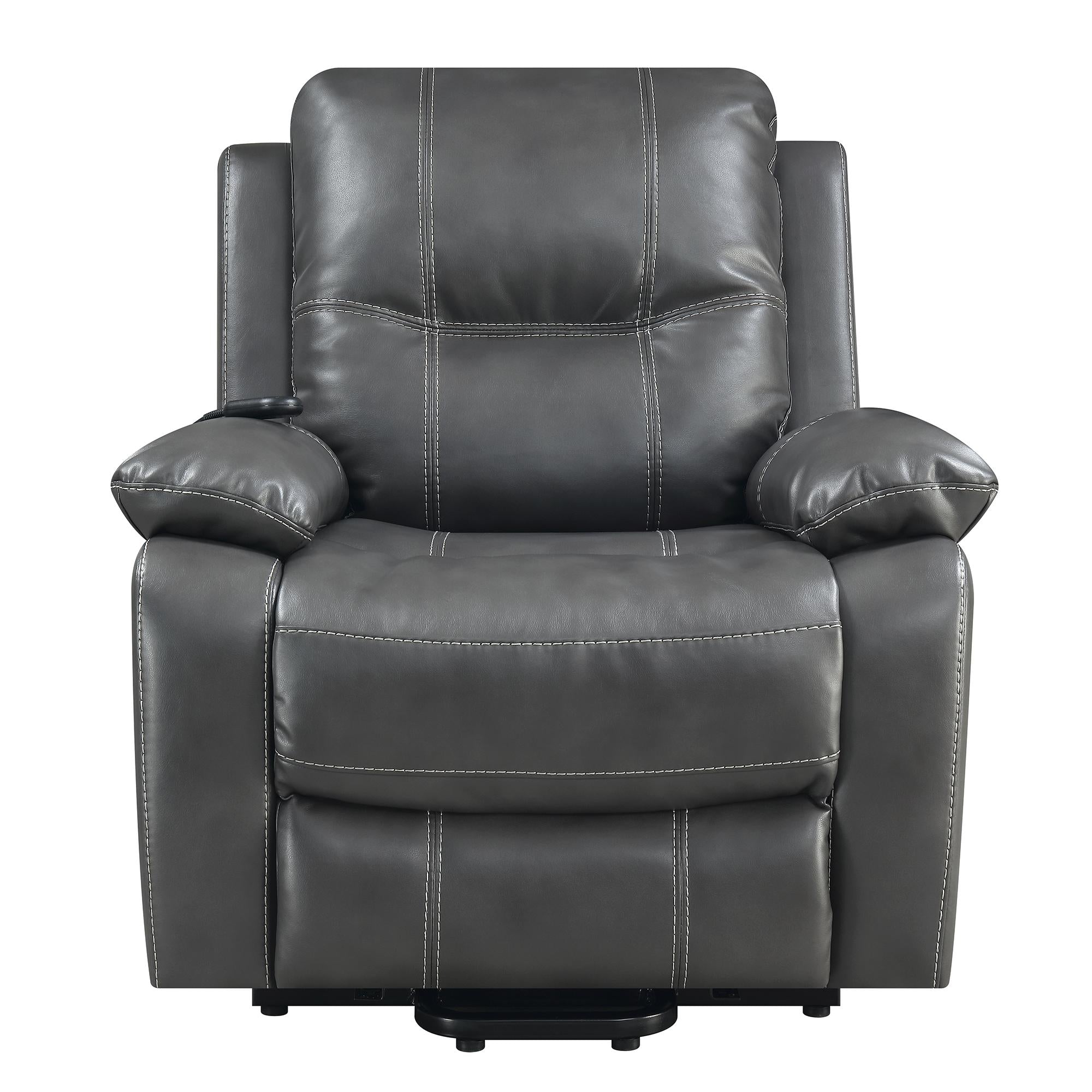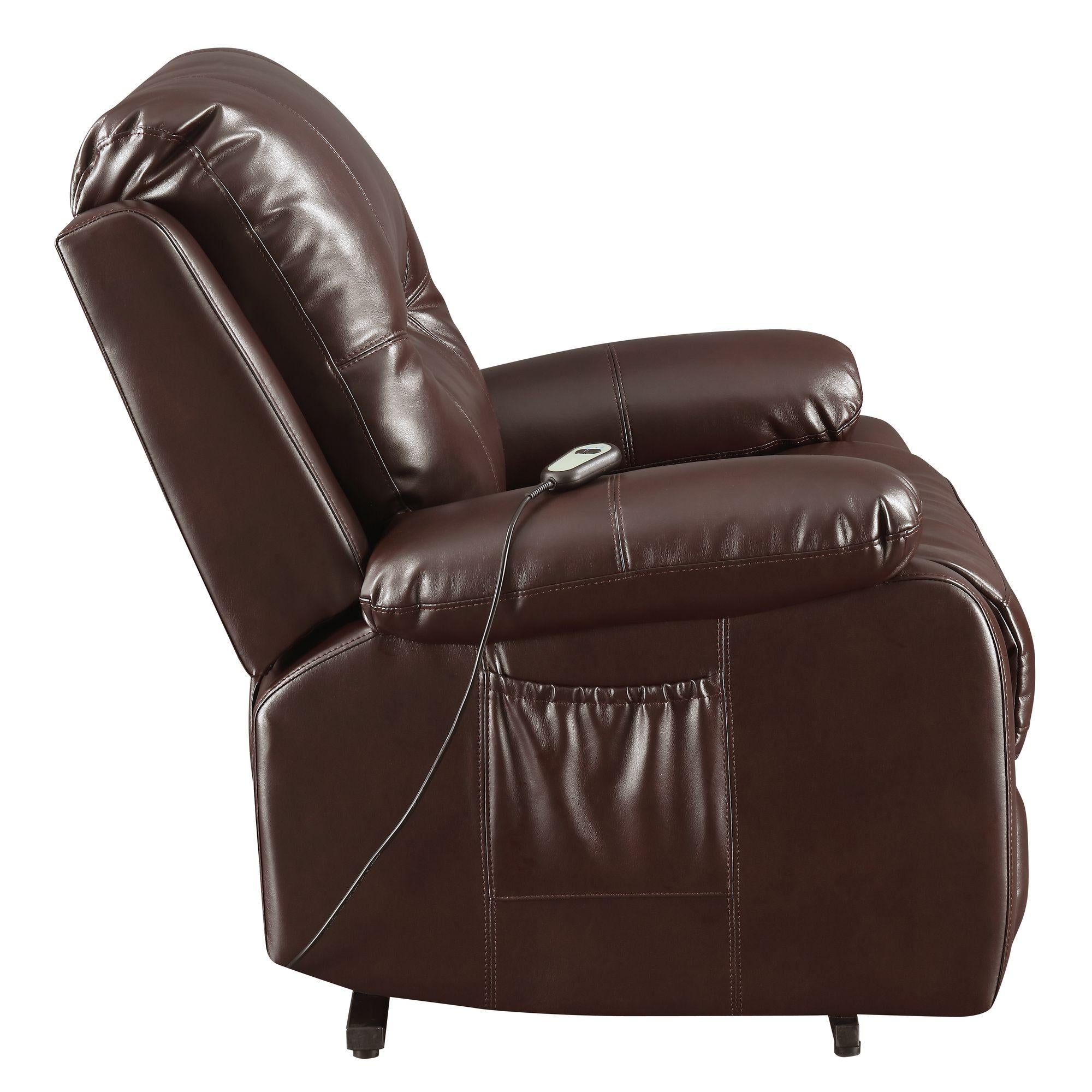 The Dylan Power Motion Lift Chair Recliner is the ultimate recliner for the man room or for the living room! This chair features power recline, power motion and power lift. In need of a little boost to get out of this super comfy recliner, simply press the button on the remote control and youre good to go! This recliner is dressed in a fashionable, faux leather fabric, give you the look of real leather but without the price of real leather. Add this power motion recliner to your home for ultimate relaxation.
