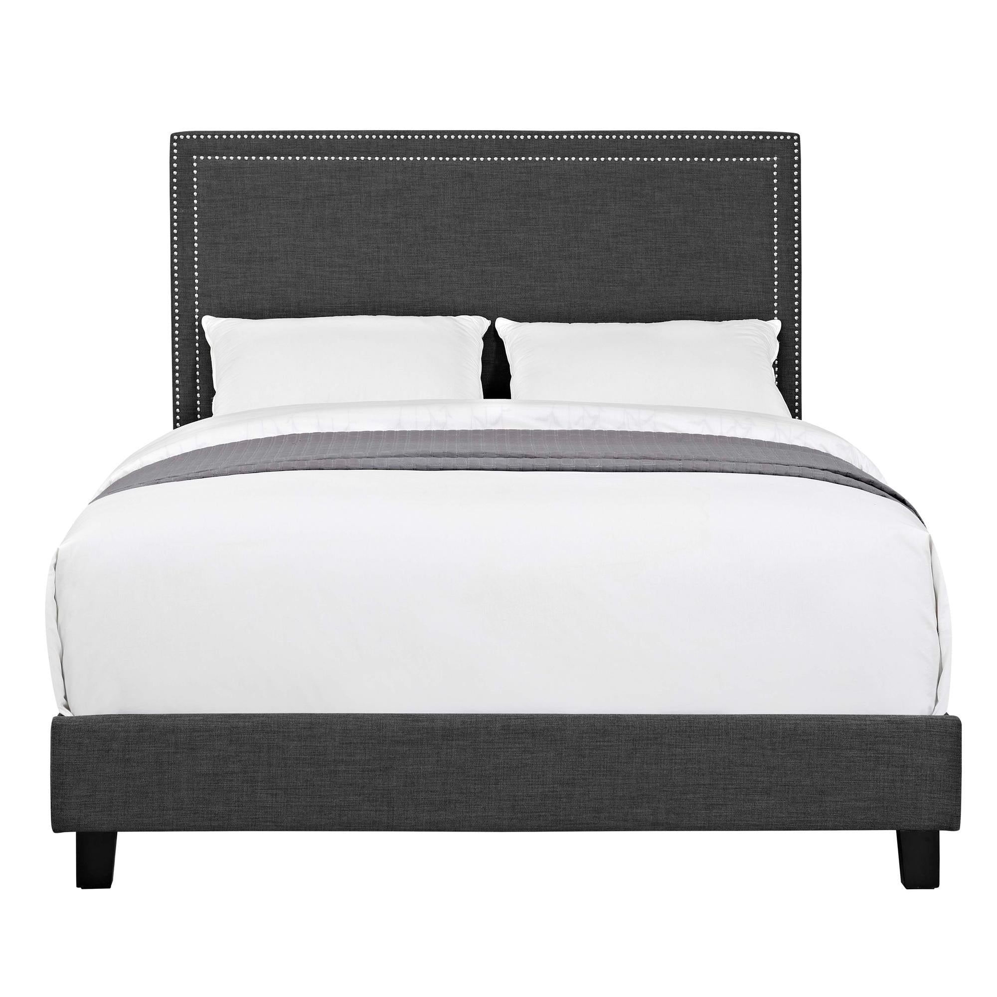 The Erica Upholstered Queen Platform Bed will instantly give your bedroom the update youve been craving! This stylish upholstered bed features chrome nail head trim along the headboard. No box spring required here, thanks to the euro slats! The euro slats offer a flexible foundation for your mattress. Keep it classic or mix it up, by pairing the Erica Bed with the Erica Chair for a complete look!