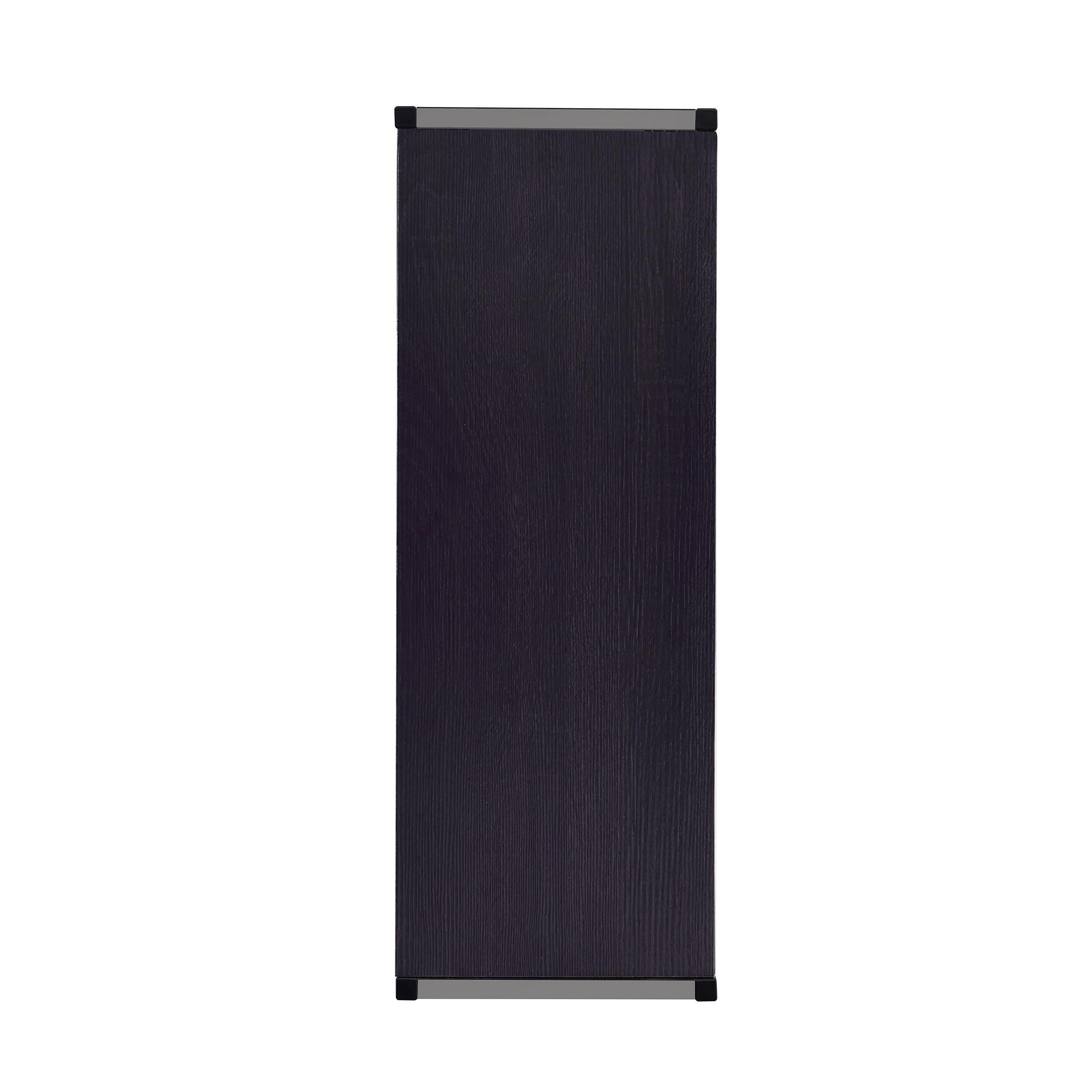 The Ester Bookshelf is designed for decorating goals! This bookshelf features chic cutouts on the sides adding extra elements of design to this already stylish piece. The shelves are wooden and have a chic, black finish on them. The sides of the shelf are metal and feature a chrome finish. This bookshelf was made to display your favorite decor in the chicest of ways; so fill it up, make it pretty and be the envy of all your friends! - Vertical Bookshelf - Intricate Design on Outer Edges - Five Spacious Shelves - Chrome, Metal Base - Wooden Shelves in Sleek, Black Finish - Contemporary Design Particle Board Metal 14 D x 36 W x 71 H, 44lbs. 1 Year Limited Manufacturer Warranty