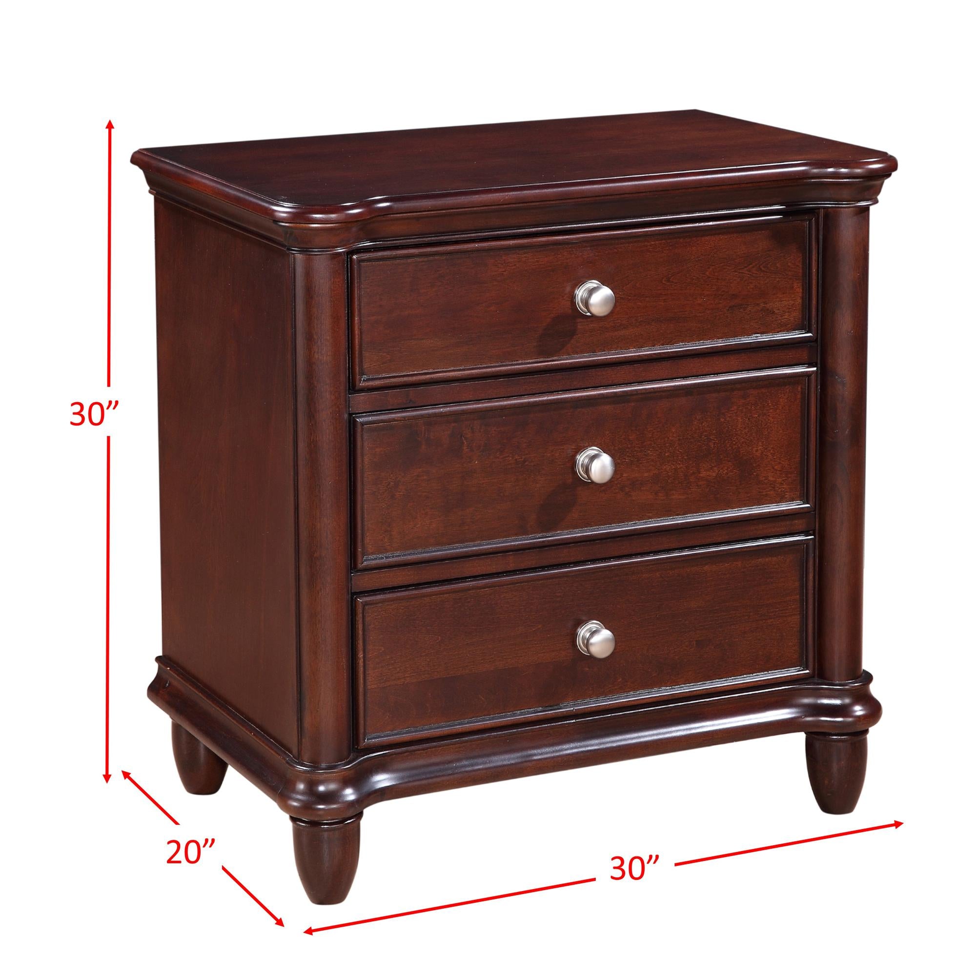 The Hamilton 8-Drawer Chest is the perfect addition to your bedroom! This vertical chest comes with eight, spacious drawers in various sizes. The chest also comes with a sizable chest, giving this traditional chest an updated look. The bottom drawer features a dust proofing layer to help protect your belongings. The silver finish drawer knobs complement the beautiful cherry finish perfectly. Bevel edges and tapered feet complete the look of this traditional design. - Beautiful multi-step cherry finish Dust cover under bottom drawer to protect clothing Designed for style and function Engineered for long lasting durability Poplar solid and birch veneers 20 D x 40 W x 56 H, 128lbs. 1 Year Limited Manufacturer Warranty