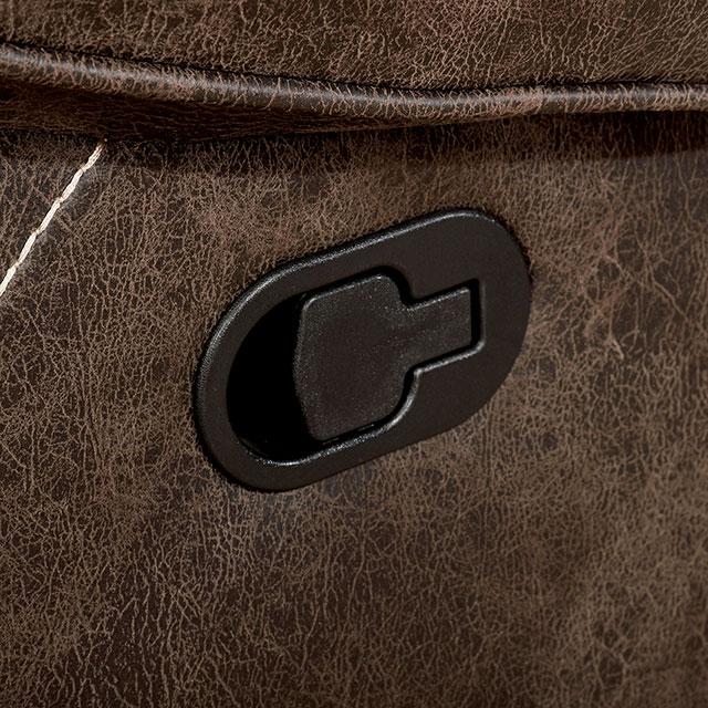 KENNEDY Motion Loveseat, 75 5/8"L X 41 1/4"W X 41 1/4"H, RECLINED: 75 5/8"L X 66"W X 32"H (SEAT HT: 20 1/2", SEAT DP: 23 1/2"), 176lbs. Flip up the footpads and recline to find the perfect position to stretch out or take a nap. Plush back and head cushions, along with the padded arm rests, let you sink in, and your daily stress fades away. Get tucked in this soft leatherette masterpiece.