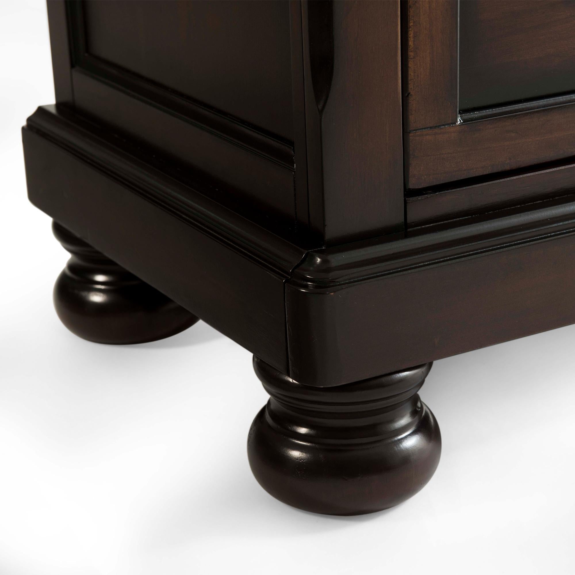 The Kingston 2-Drawer Media Chest is the perfect addition to your home! This media chest comes with two, spacious drawers; perfect for storing away all of your belongings. This TV stand also has media compartments so your DVD and other devices have a designated storage spot. In the back is a chord control cutout to help maintain and keep the chords from your devices neatly out of the way. Bun feet and bevel edges complete the look of this traditional media chest. - Bun feet - Bevel Edge - 2 Spacious Drawers - Anti-Tipping - Media Compartments - Cable Management Pinewood; Plywood; MDF w. Cherry Veneer; Dark Metal Finish Knobs 18 D x 45 W x 38 H, 108lbs. 1 Year Limited Manufacturer Warranty