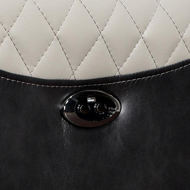 LEIPZIG Power Sofa, 84 7/8"L X 39 3/8"W X 41 1/8"H, RECLINED: 84 7/8"L X 64 1/8"W X 33 1/2"H (SEAT HT: 2 1/4", SEAT DP: 21 7/8"), 221.23lbs. With a touch of your finger, turn your regular hangout into a party! The eclectic vibes start with the two-tone finish, with black and light gray combo that screams "Fun!" Like every piece in this ensemble, this sofa allows for your USB devices to be charged throughout the night. Specially designed power controls help users recline slowly. It is part of a living room set will certainly bring life to your next social gathering.