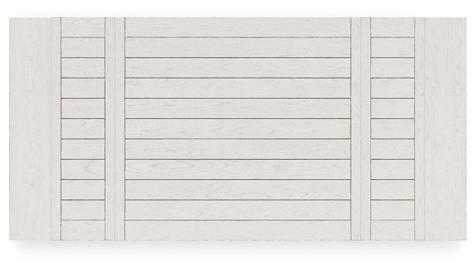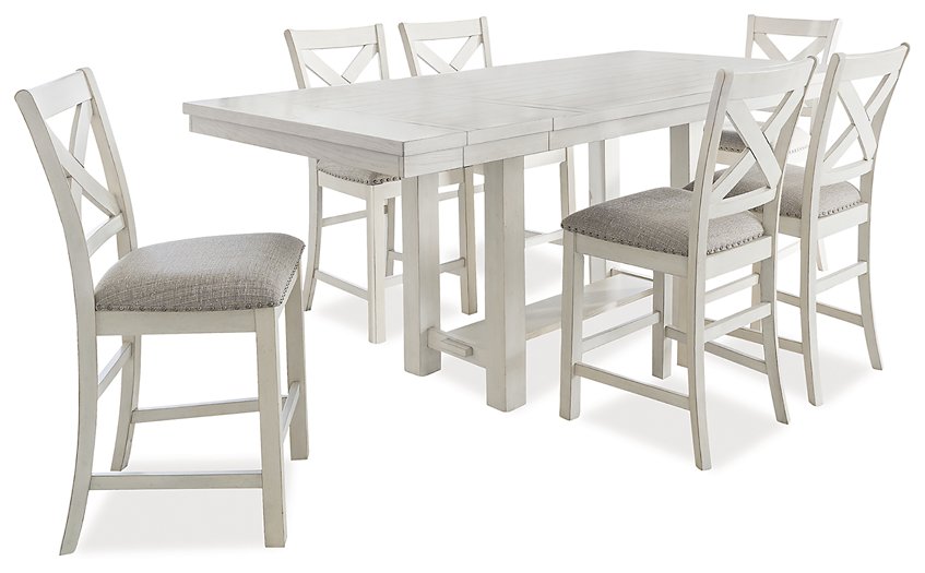 This dining package is sure to impress come mealtime. With its antiqued white finish and a planked effect tabletop, farmhouse-style dining has never been so fashionable. All that’s missing is you and your family.