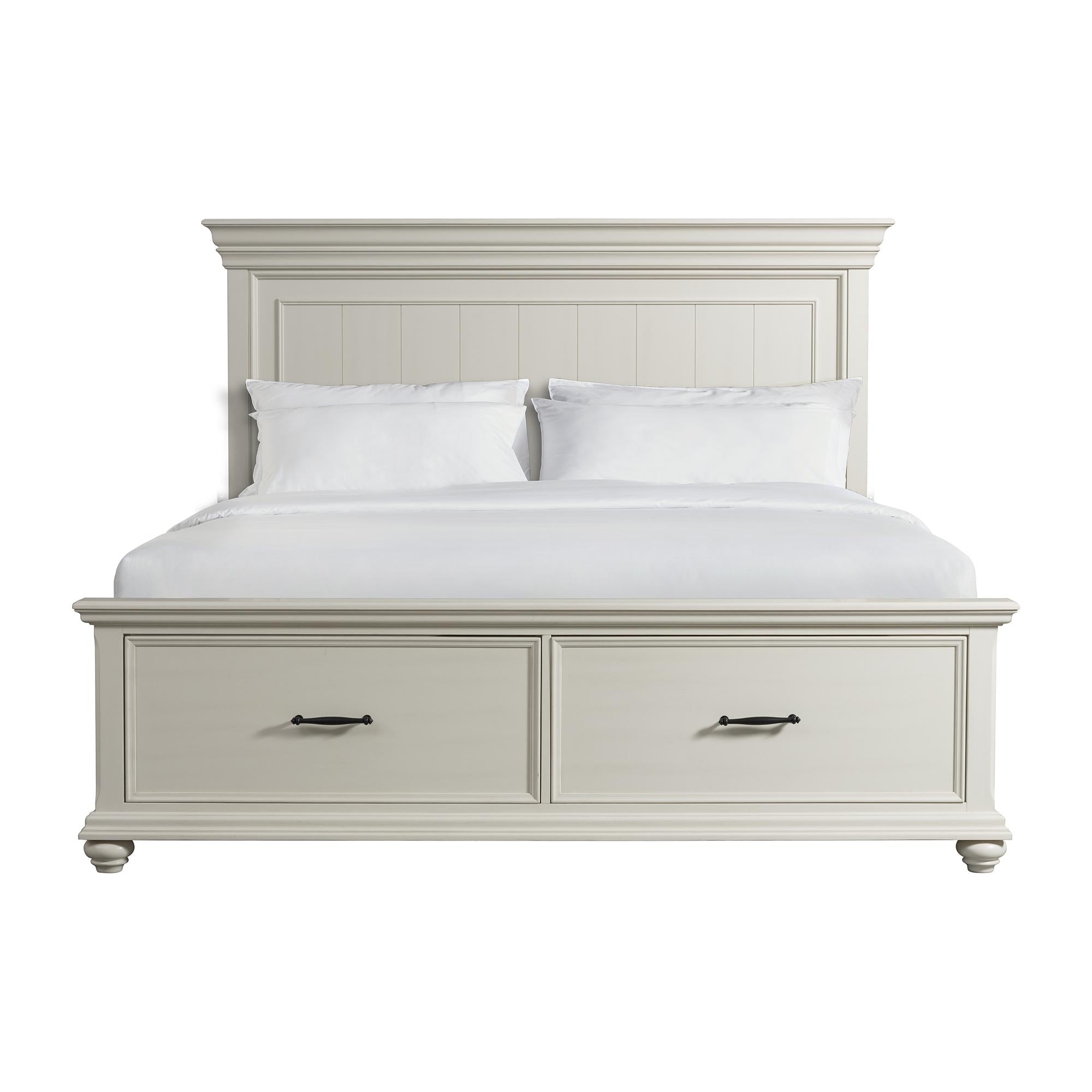 The Slater Queen Platform Storage Bed is going to look amazing in your home! This bed comes with two spacious storage drawers in the footboard, allowing you to easily store away extra blankets or linens. The headboard adds extra flair with its plank styling, making it a bed youll want to fall into every night! The off-white finish adds character and charm and will never go out of style. The dark metal drawer hardware pairs beautifully with the finish; while the bevel edges and bun feet complete the look. - Platform Storage Bed - Two Spacious Drawers in Footboard - Plank Style Headboard - Dark Metal Drawer Hardware - Bevel Edges Throughout - Off-White Finish - Bun Feet - No Box Spring Required Poplar Wood MDF Butt Joint Corner Blocked Reinforcements 13 Slats 7 Slat Supports 88 D x 69 W x 64 H, 238lbs. 1 Year Limited Manufacturer Warranty