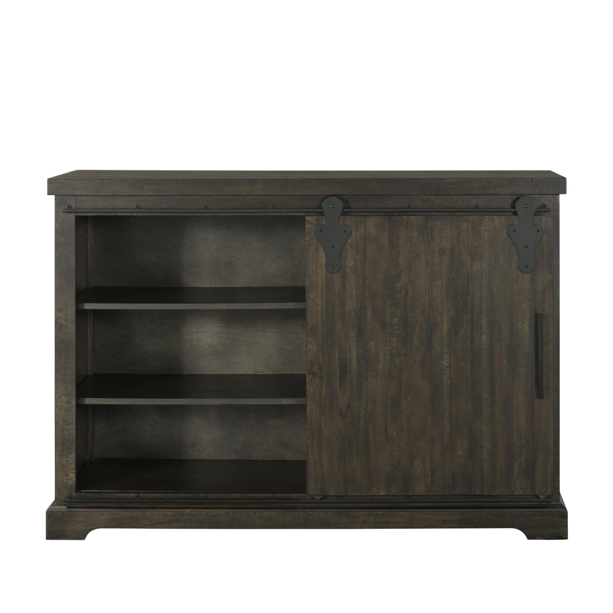The Stone Server brings refined style and warm design to your dining area. Constructed of wood solids and veneers with a smokey walnut finish, this piece offers three spacious drawers and a trendy sliding door. Decorative dark finished hardware completes the look of this handsome server. - Three Drawers - Sliding Cabinet Door - Thee Interior Shelves - Dark Metal Hardware - Smokey Walnut Finish - Distressed Markings Throughout Poplar Wood; Engineered Wood with Acacia Veneer; 18 D x 60 W x 42 H, 187lbs. 1 Year Limited Manufacturer Warranty