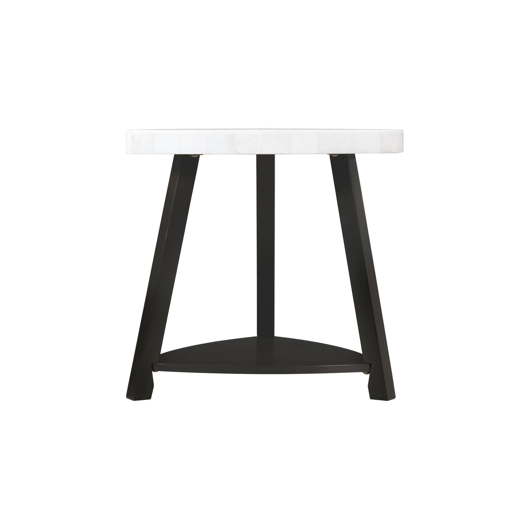Trinity White Marble Top End Table - White, Marble Table Top - Guitar-Pick Shaped Table - Bottom Shelf - Black, Wooden Base - Contemporary Style - Transitional Color Marble Acacia MDF Birch Veneer 24 D x 24 W x 25 H, 42lbs. 1 Year Limited Manufacturer Warranty