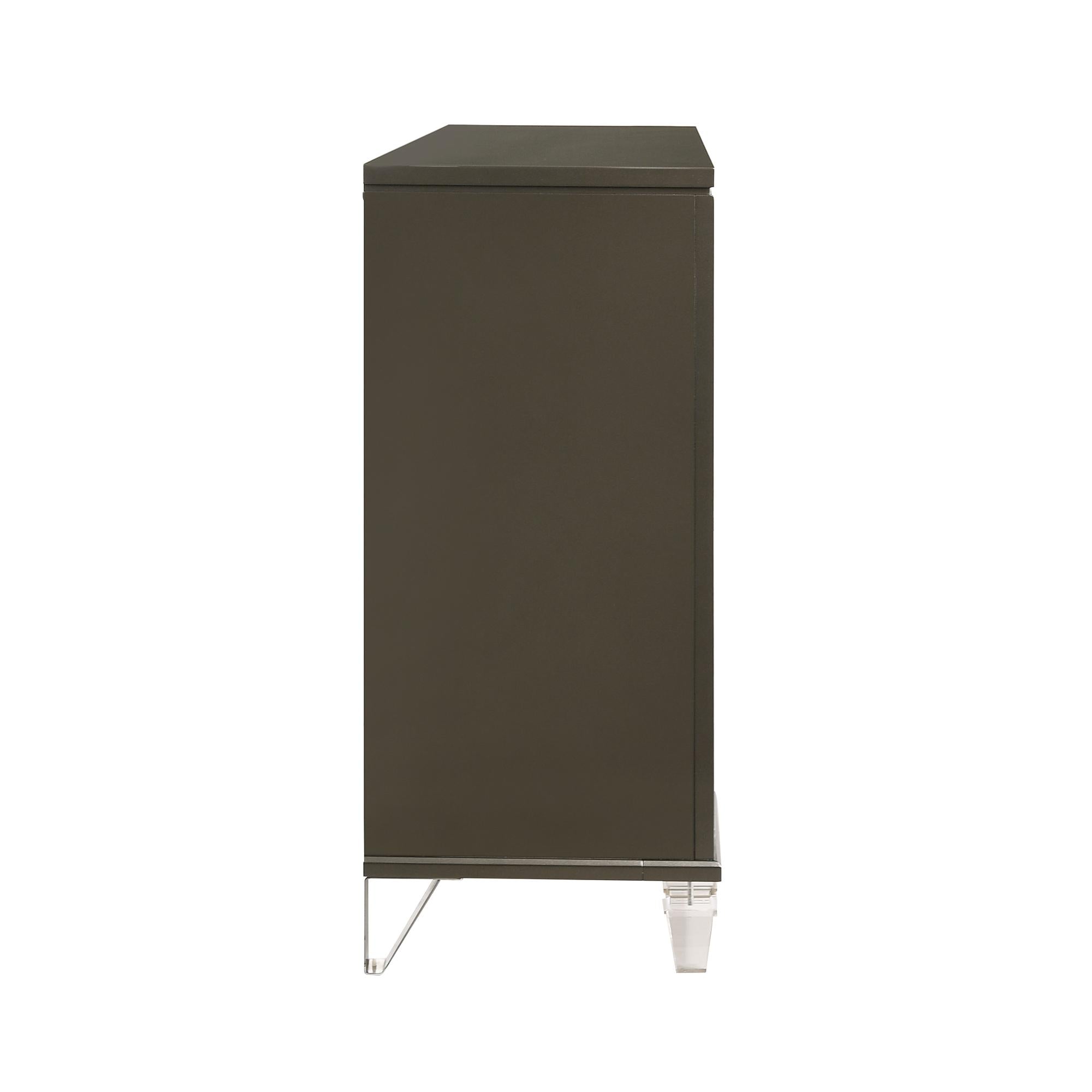 The Twenty Nine 6-Drawer Dresser is bedroom goals! This fabulous dresser not only looks pretty and glamorous, but its also super practical. This bedroom staple offers six, spacious drawers while the top two drawers have felt-lined hidden drawers; perfect for storing away your more valuable possessions. Along the front is a mirror glass trim, adding extra flair to this already stylish piece. The clear, acrylic drawer handles and feet are the perfect finishing touches to this dresser that will instantly become a bedroom staple for years to come! - Six Spacious Drawers - Two, Hidden Drawers - Sleek, Glass Trim - Acrylic Drawer Handles - Decorative Drawer Fronts - Acrylic, Tapered Feet - Felt-Lined Top Drawer - Dust Proofing Layer on Bottom Drawers - Rich, Copper Finish - Anti-Tipping Rubberwood Plywood MDF 18 D x 67 W x 41 H, 196lbs. 1 Year Limited Manufacturer Warranty